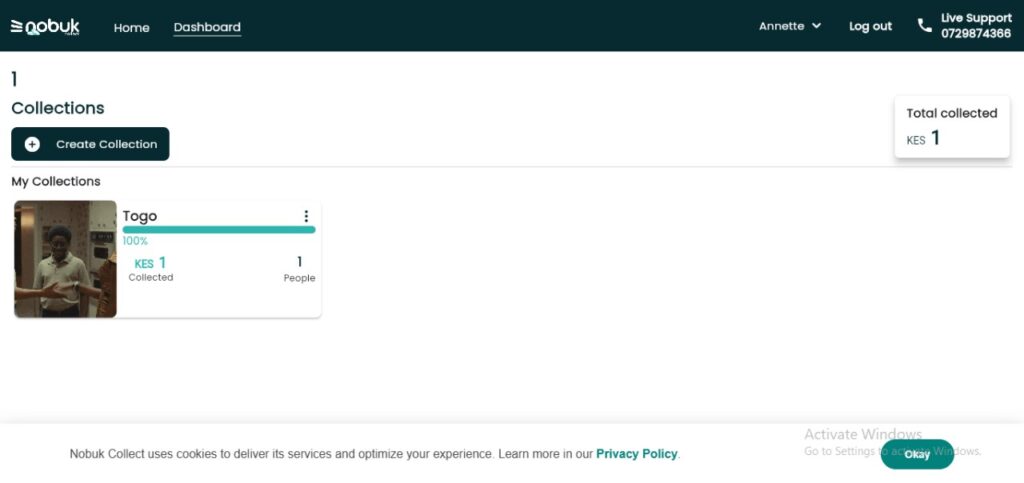 The next page you will land on after clicking on your desired collection will be your collection dashboard which will look like either of the two depending on the garget you are using.