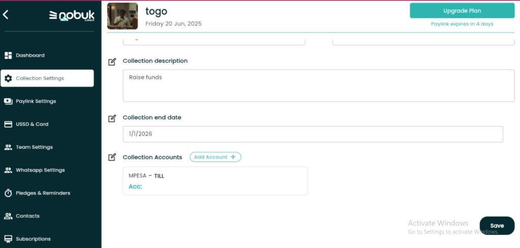 N/B : Only the person who created the collection can add different payment account for different categories.